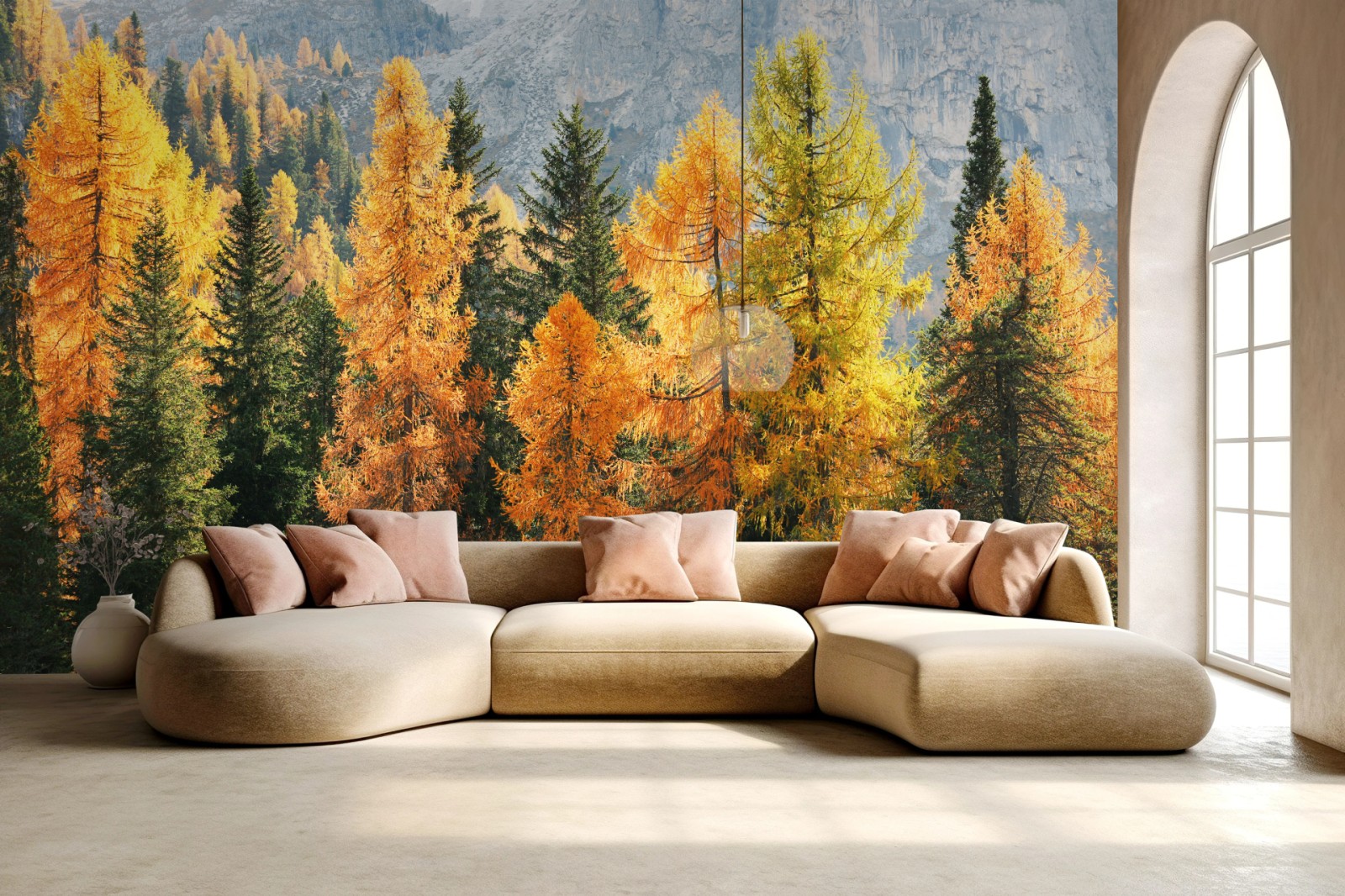 Wall mural Golden autumn larch forest