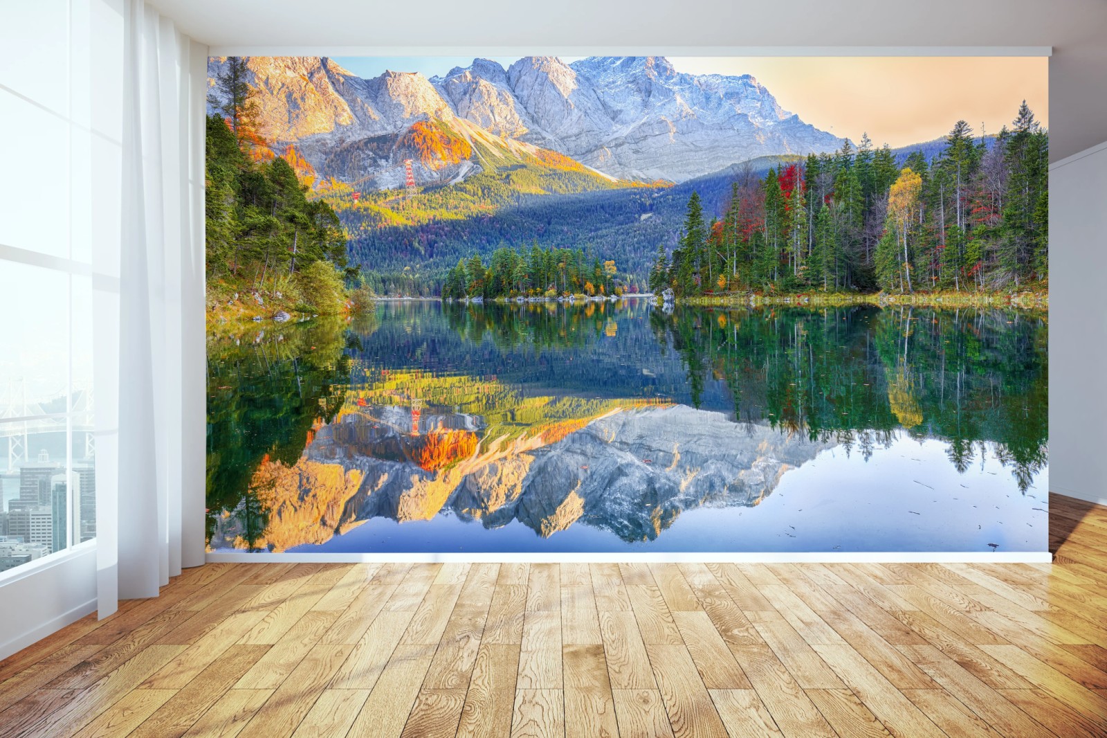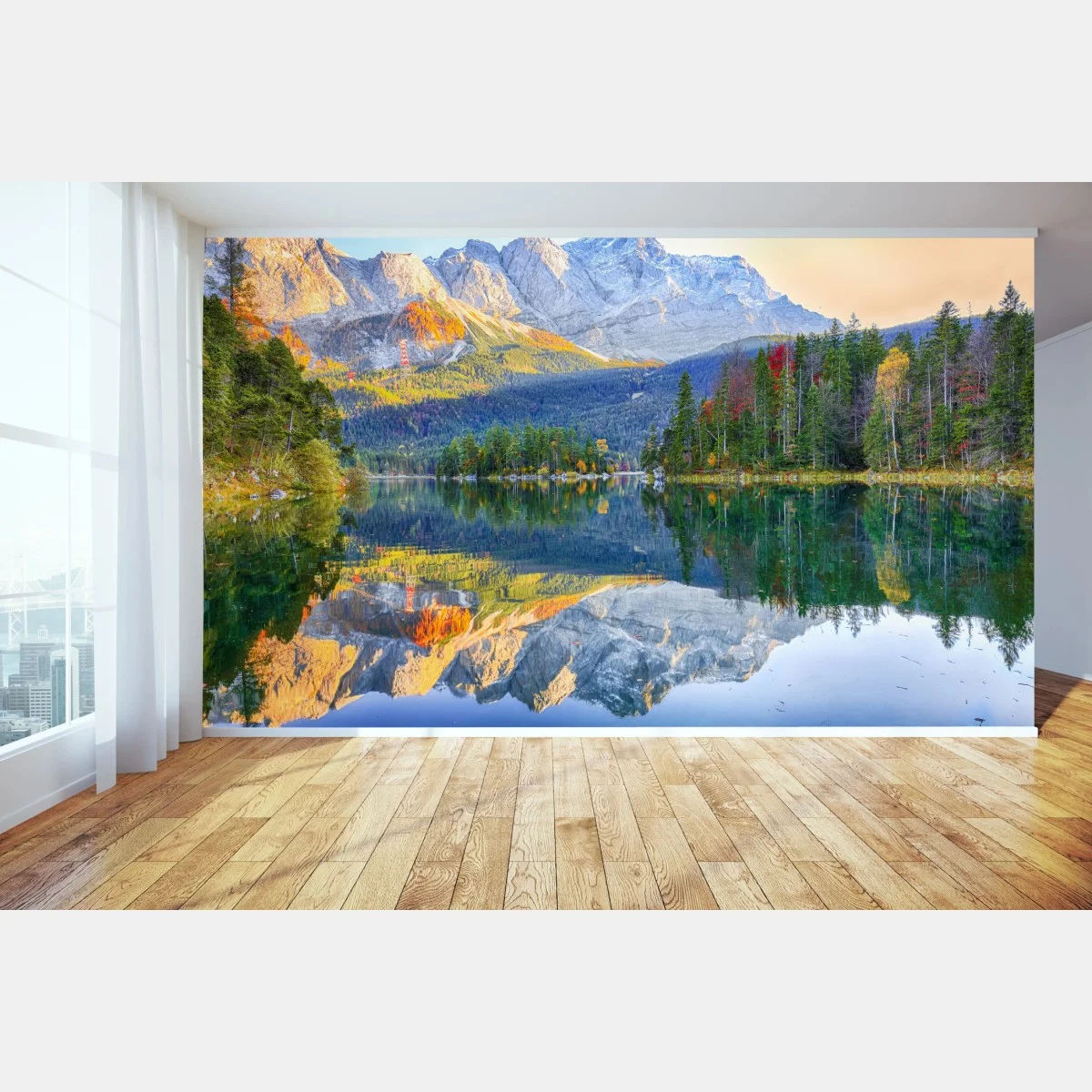 Wall mural Autumn reflections on Eibsee at Zugspitze