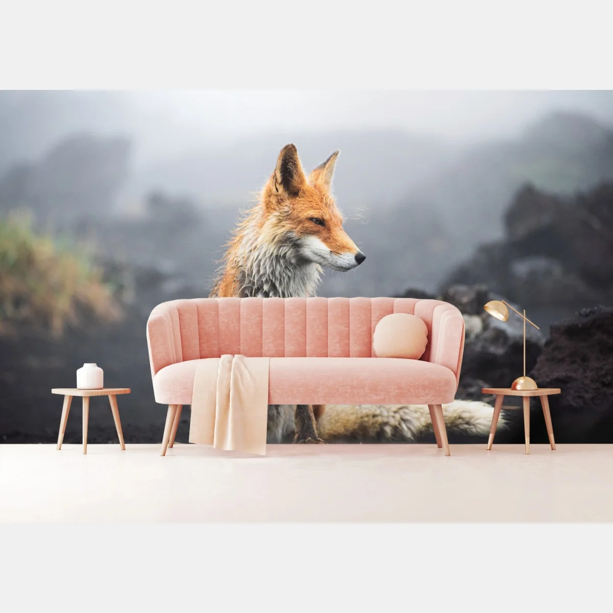 Wall mural Red fox in a misty landscape