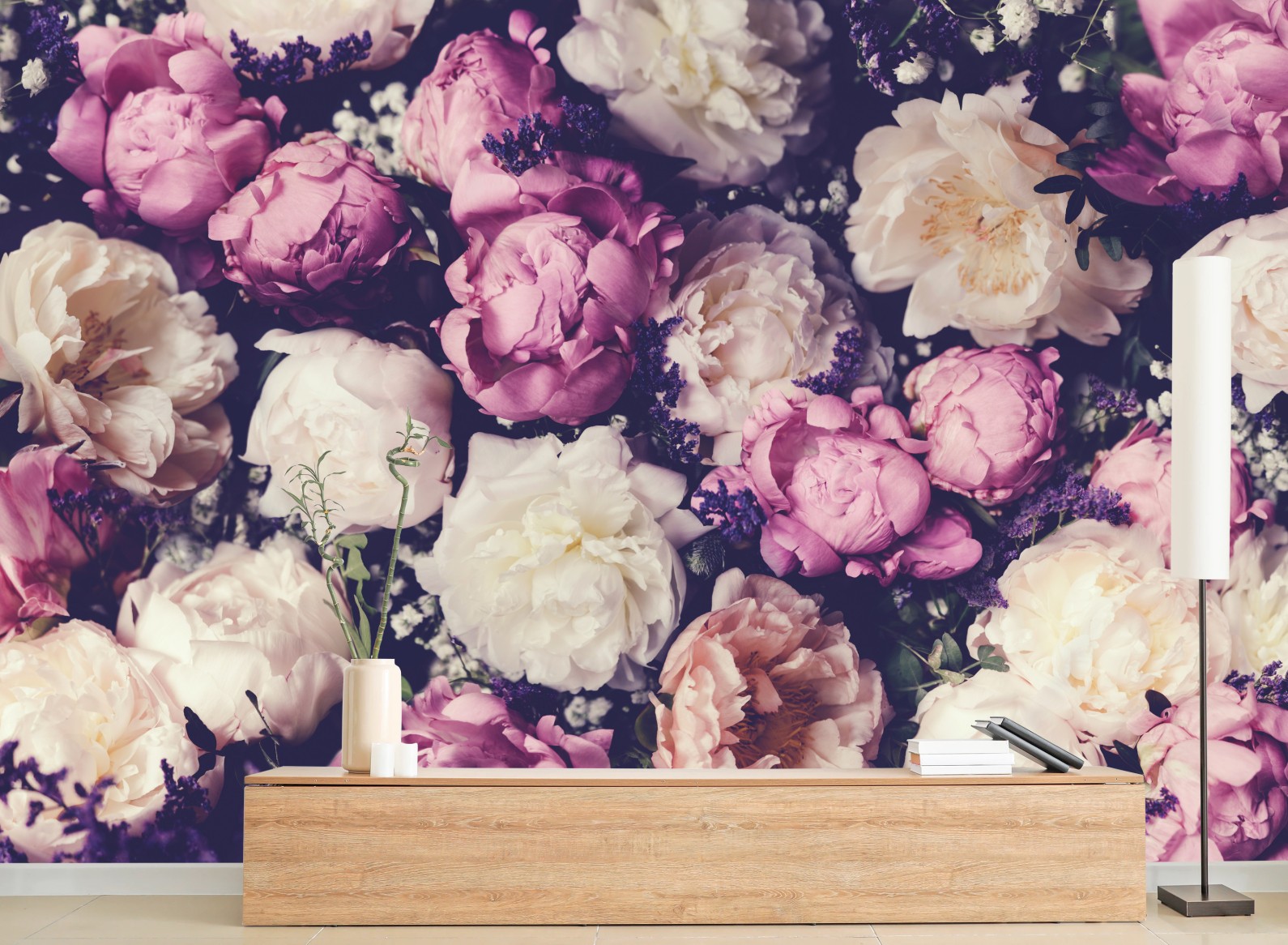 Wall mural Romantic peony bouquet in pastel tones