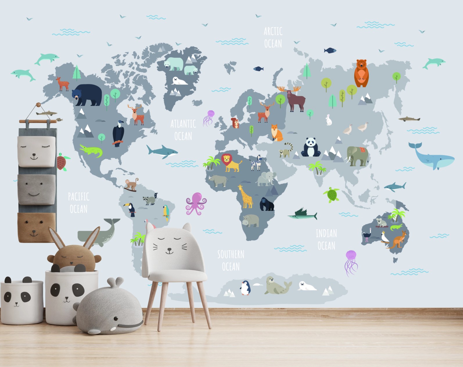 - animals, world map, continents, educational, nursery decor, kids map, pastel map, ocean animals, animal illustrations, children poster