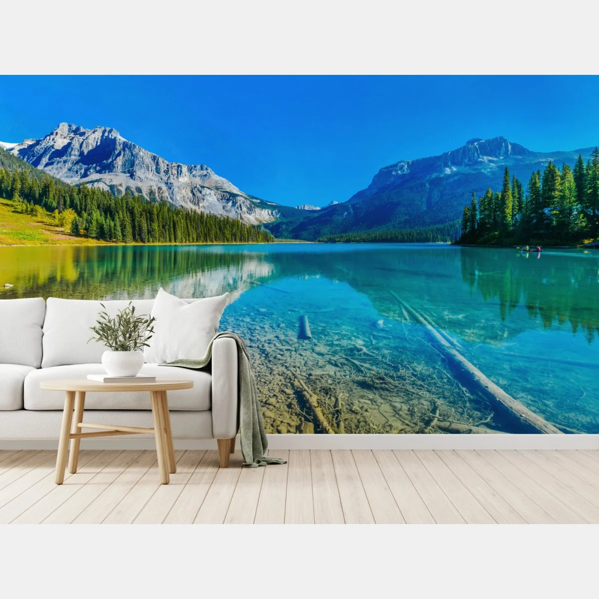 Wall mural Turquoise alpine lake with mountain reflections
