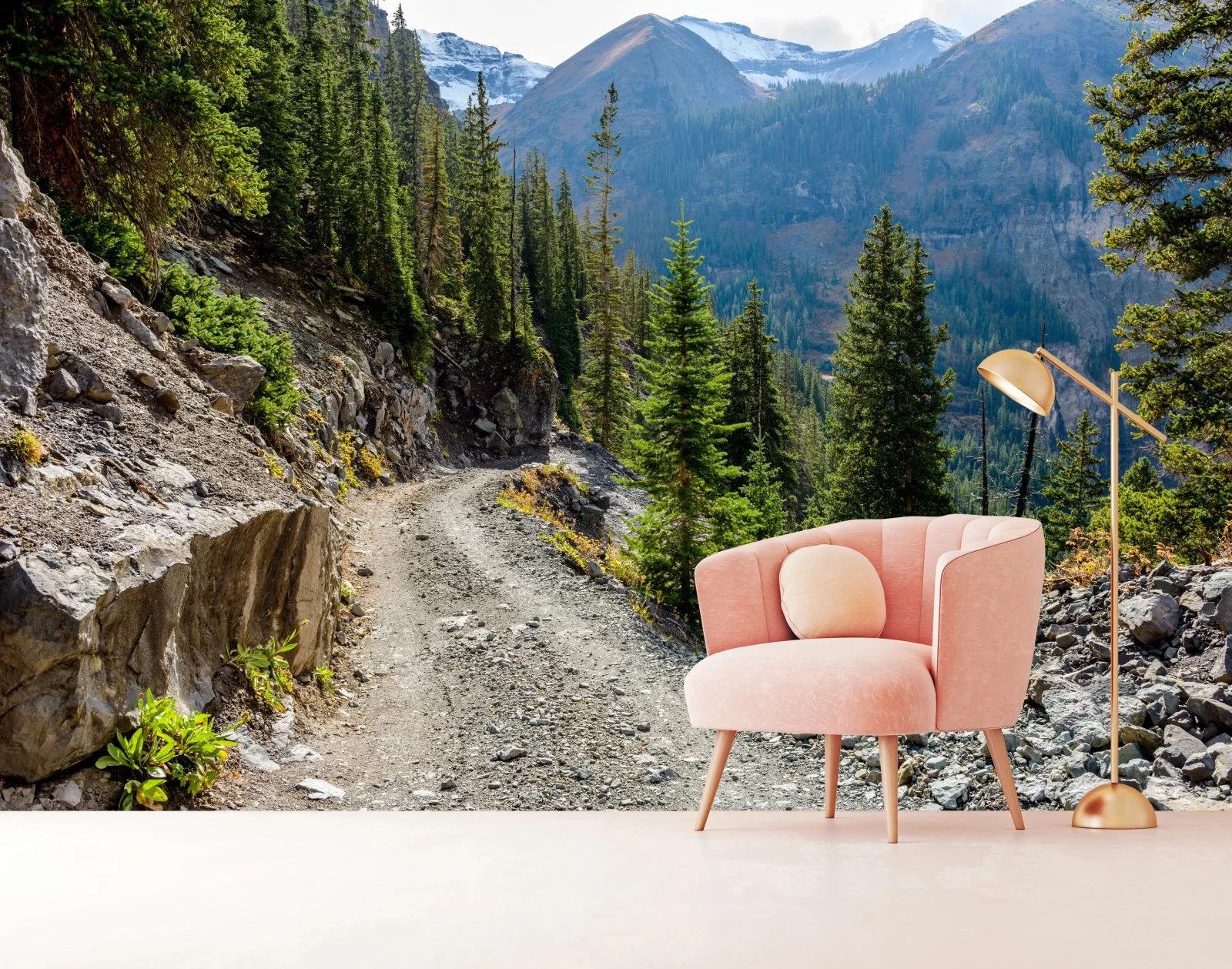 Wall mural Mountain trail through alpine forest