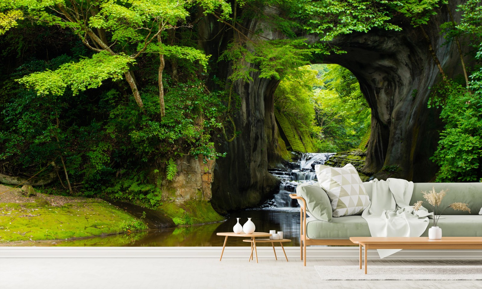 Wall mural Hidden waterfall through a rock arch