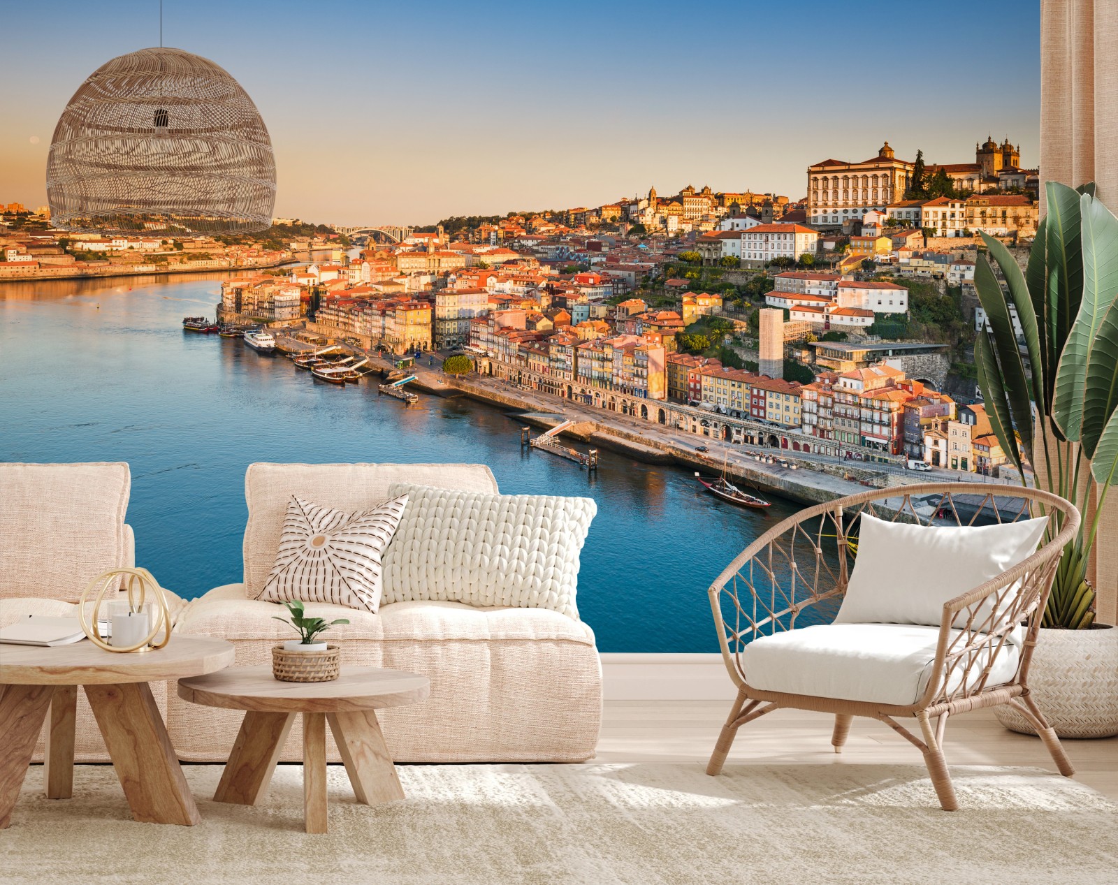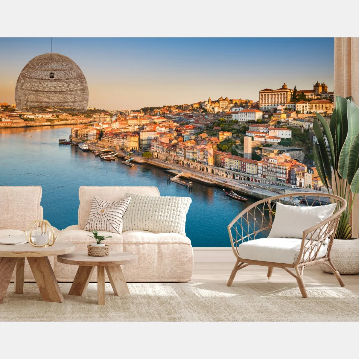Wall mural Sunlit Porto riverside skyline at golden hour