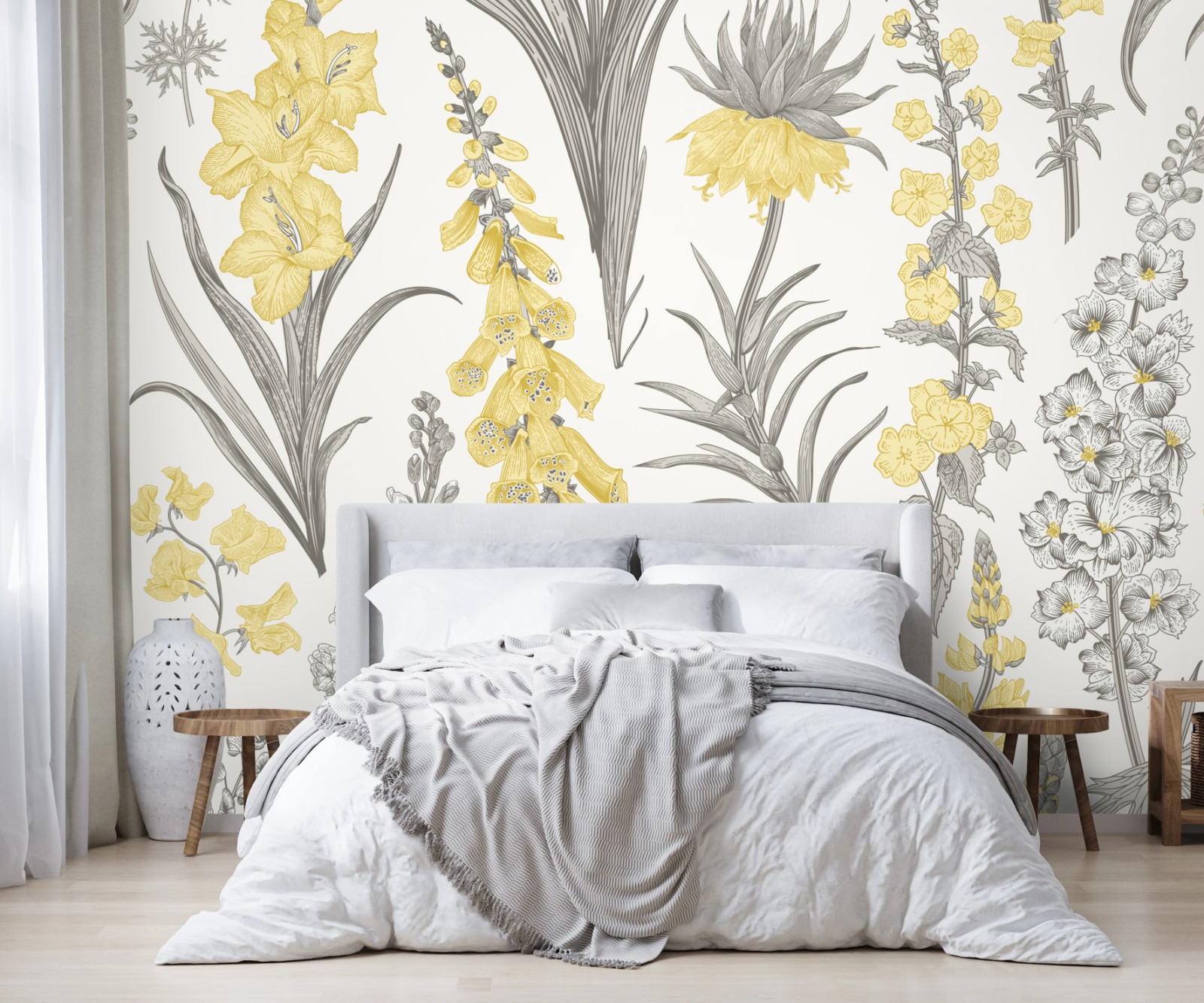 Wall mural Vintage botanical floral pattern in yellow and gray