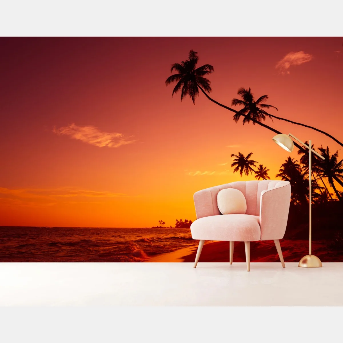 Wall mural Tropical sunset beach silhouette