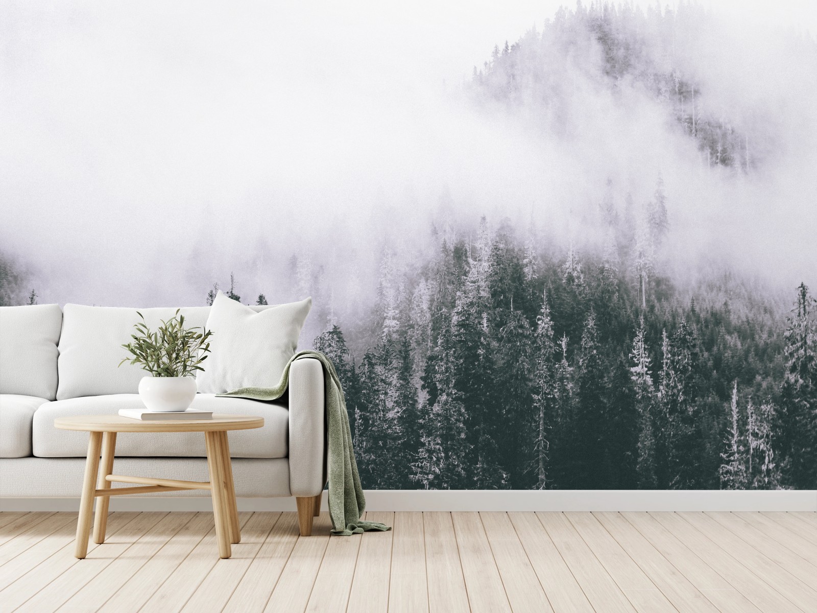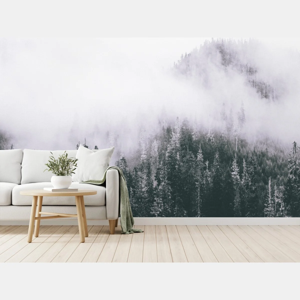 Wall mural Misty evergreen forest in fog