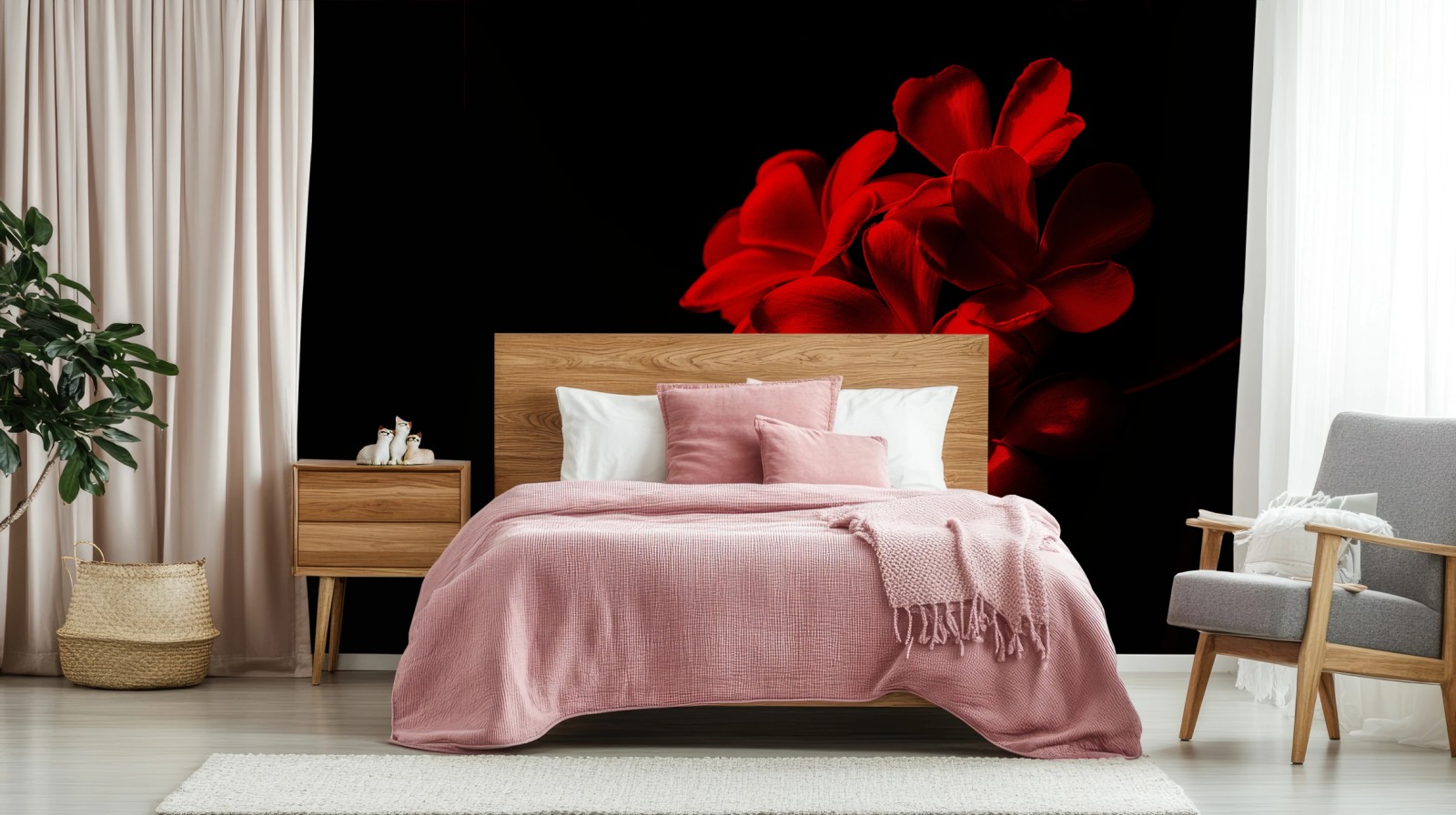 - botanical, minimalist, close-up, dark background, macro, floral art, tropical flower, red plumeria, plumeria flower, frangipani