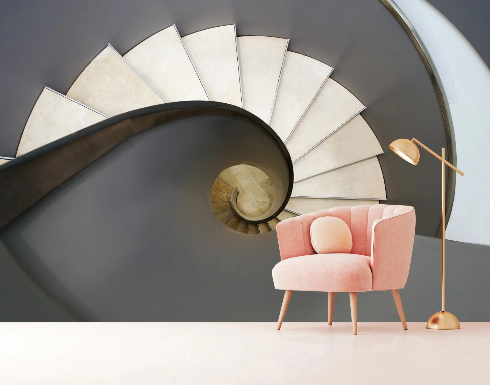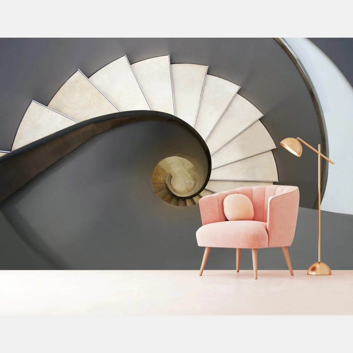 Discover striking architectural geometry in this minimalist spiral staircase print that brings depth and modern elegance to any wall.MoreLess