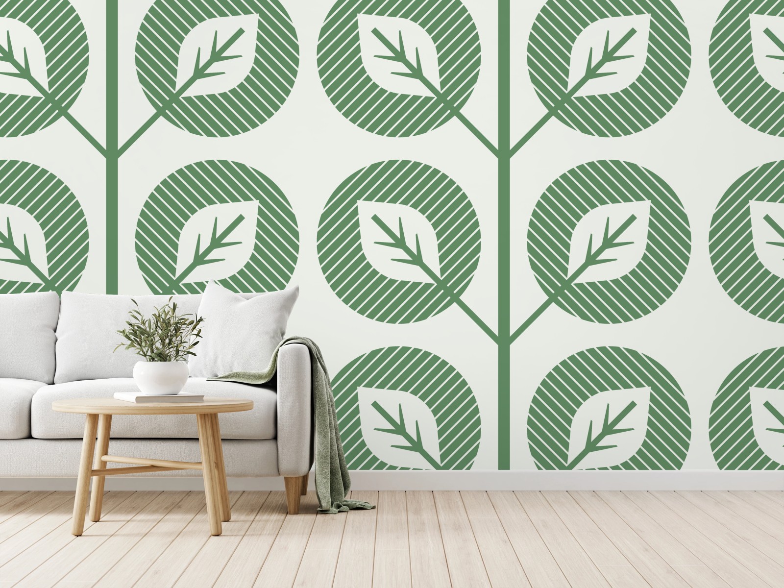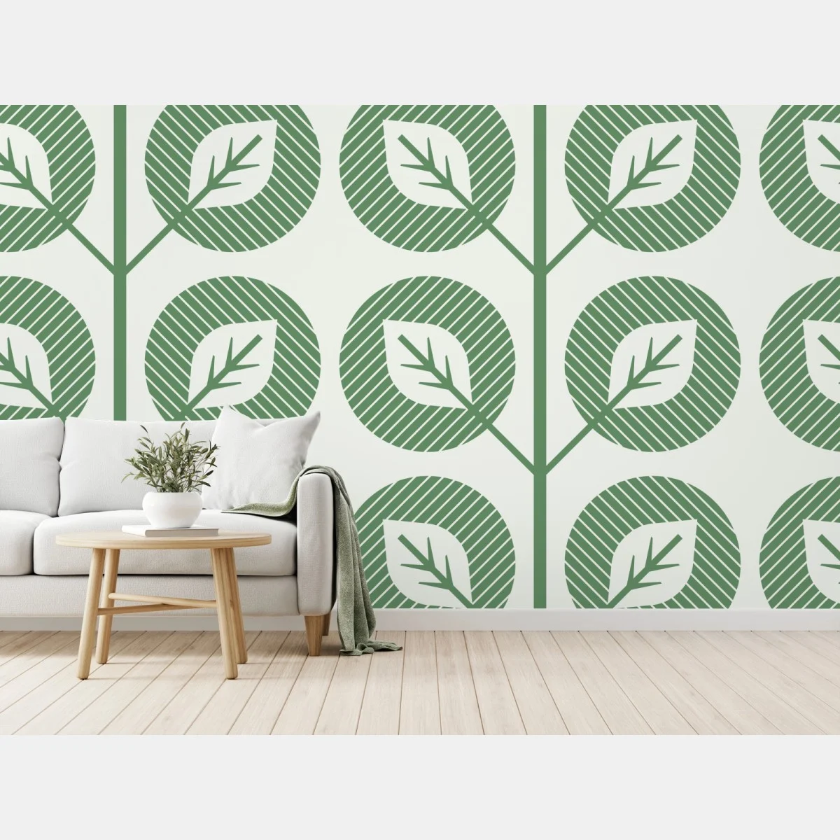 Wall mural Green geometric leaf pattern