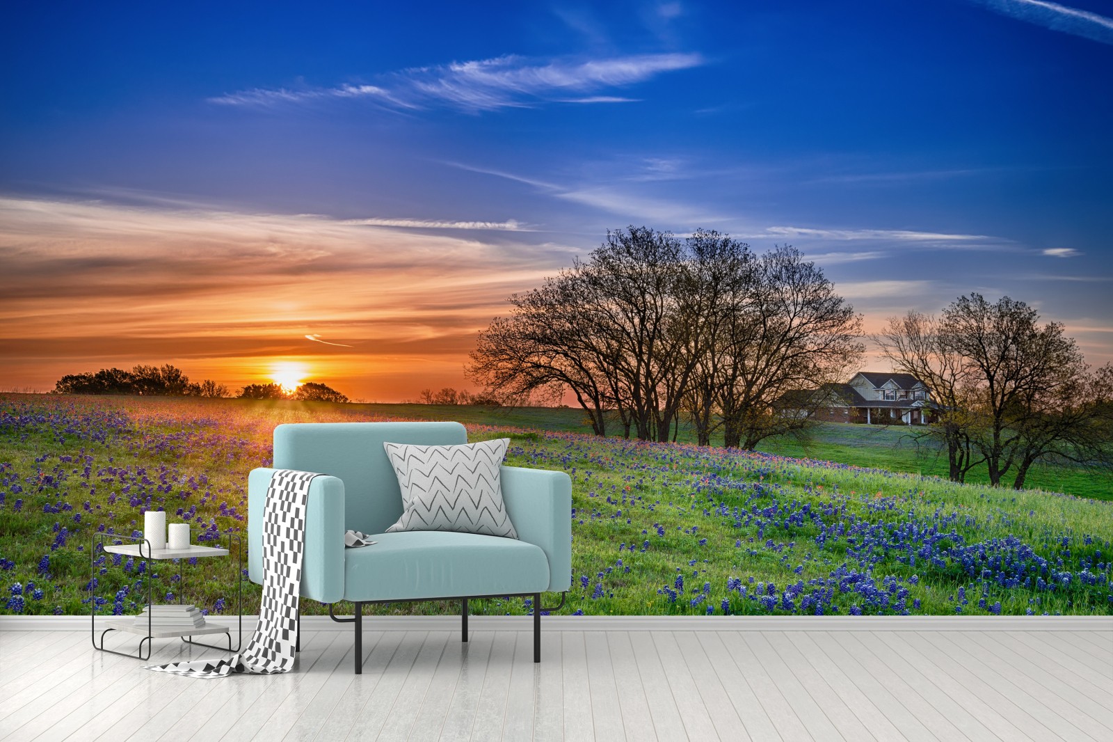 - sunrise, meadow, landscape, spring, rural, field, wildflowers, texas, bluebonnet, bluebonnets