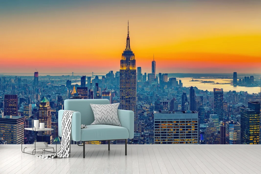 - new york, cityscape, skyscrapers, sunset, city skyline, empire state building, manhattan, evening lights, skyline photography, urban panorama