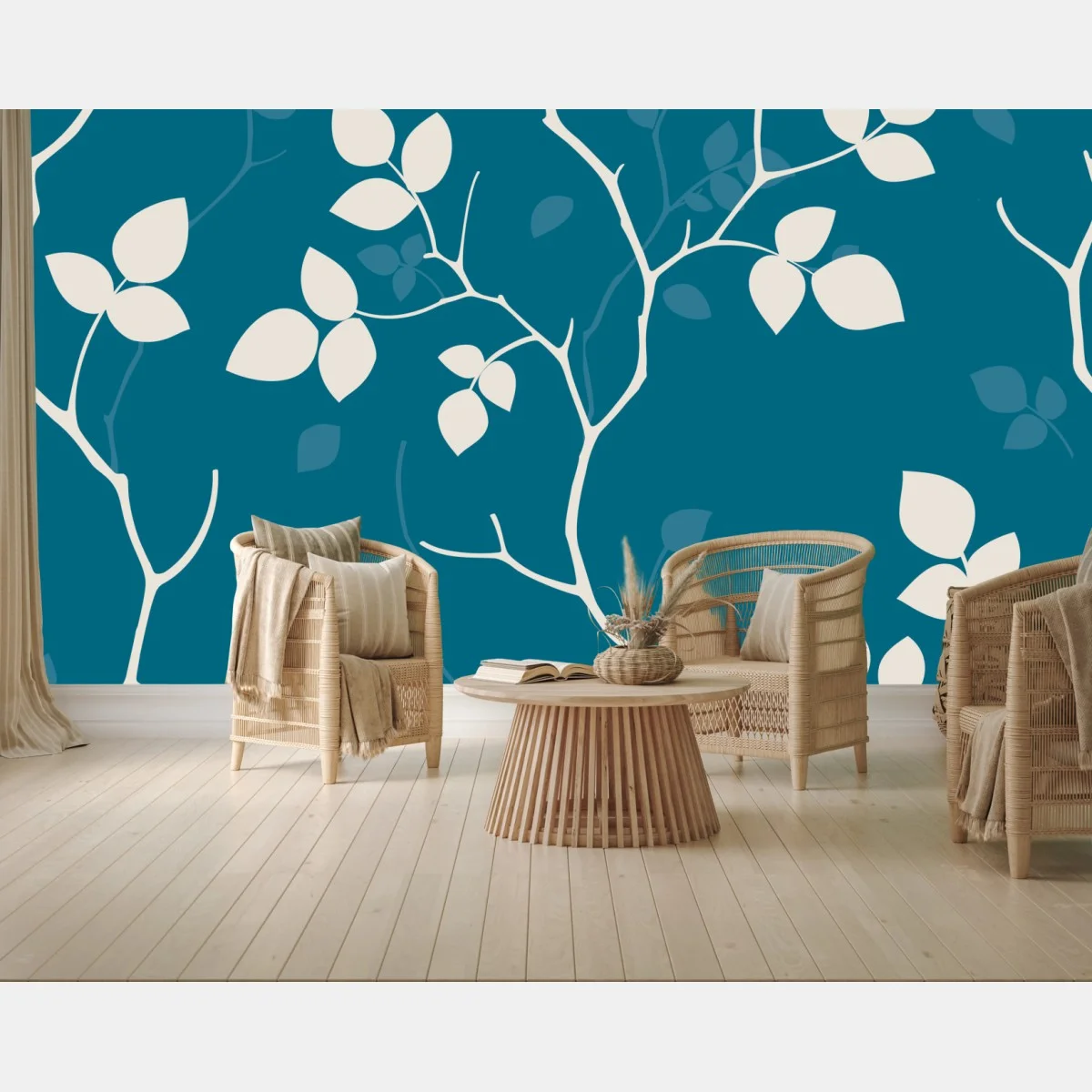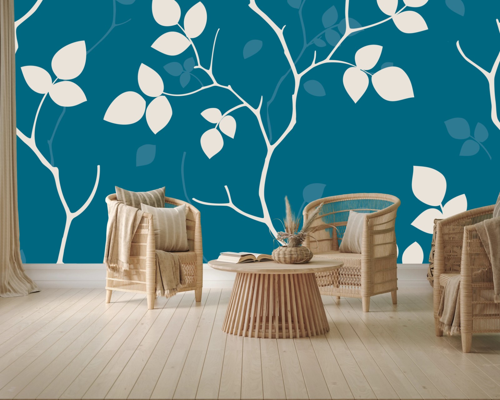 - botanical, seamless pattern, minimalist, floral, leaves, branches, turquoise, decorative, wallpaper pattern, nature-inspired