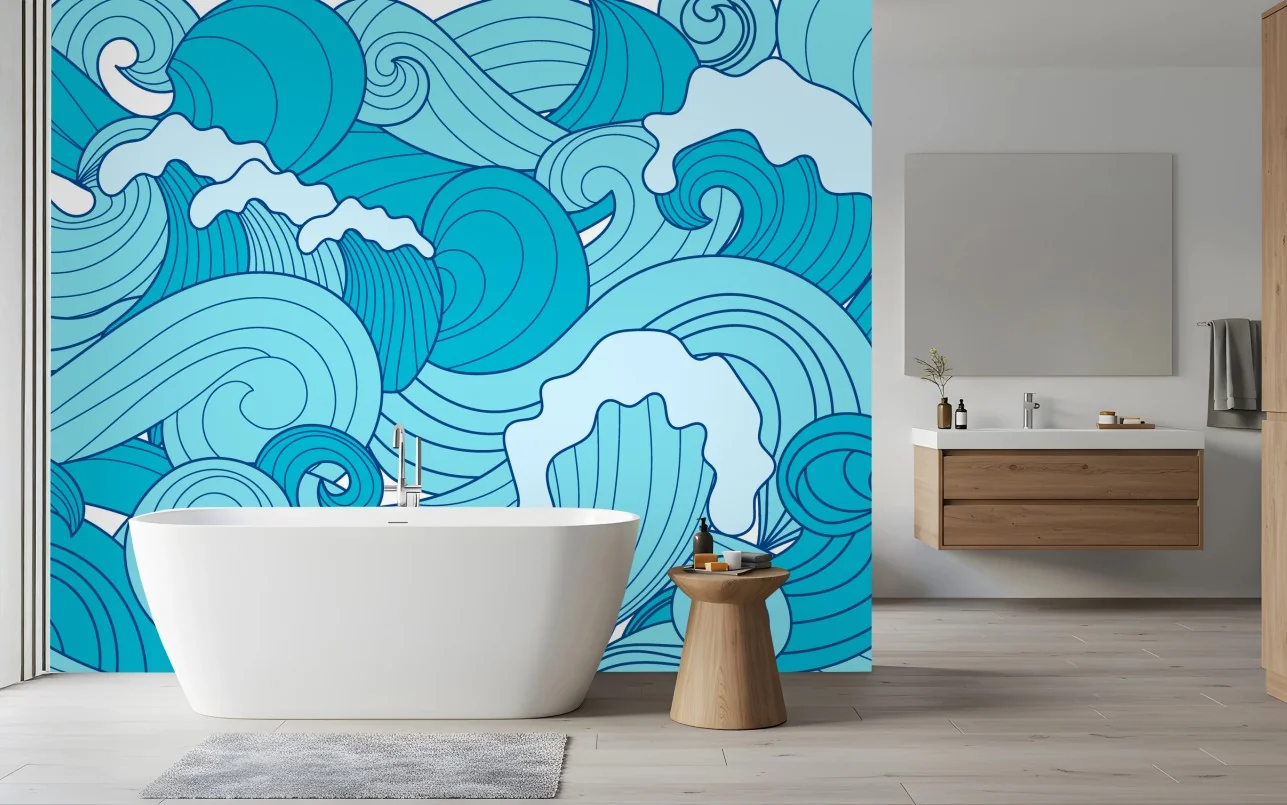Wall mural Blue ocean waves pattern