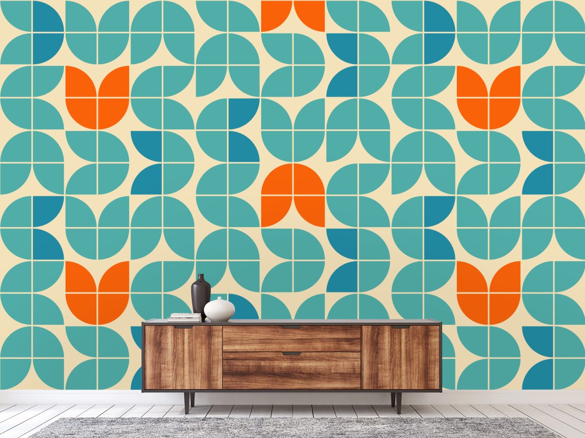 Wall mural Retro geometric tile pattern in turquoise and orange