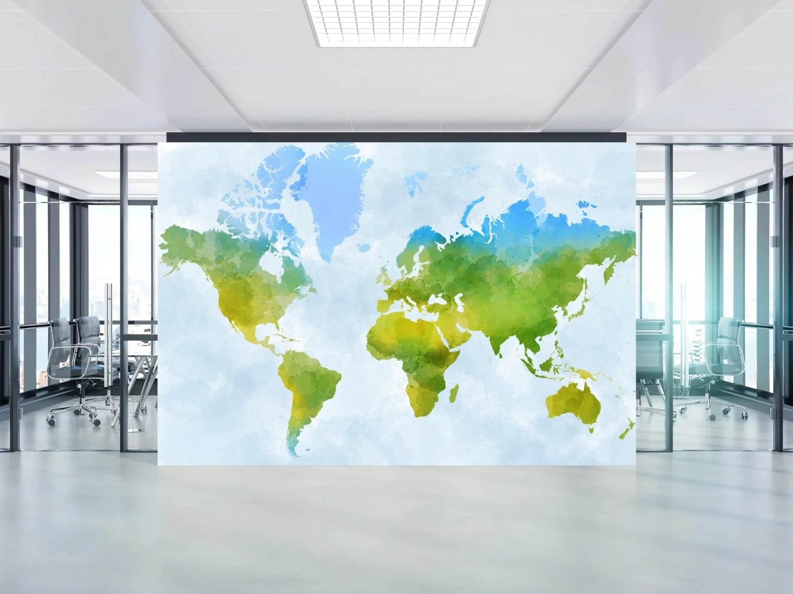 - world map, continents, geography, atlas, watercolor map, travel decor, map art, blue green, abstract map, earth