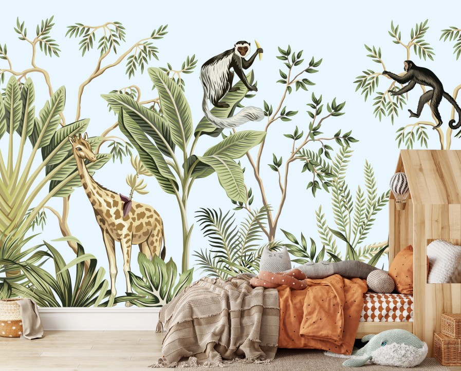 Wall mural Tropical jungle animals panorama