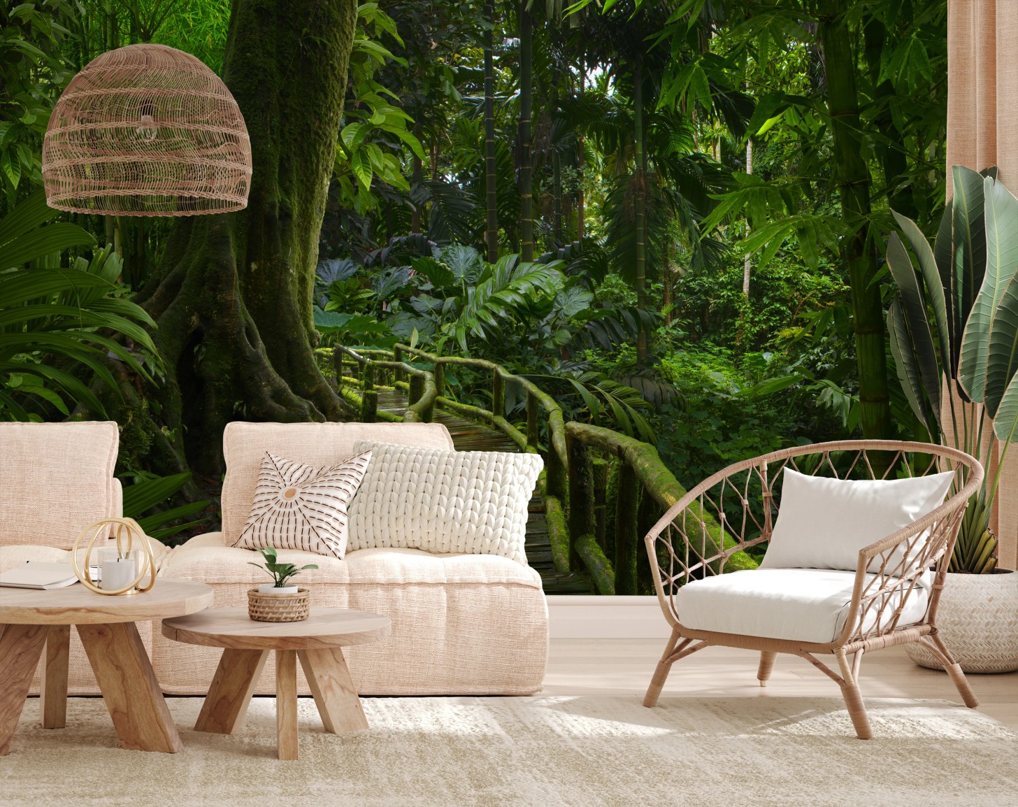 Wall mural Tranquil jungle boardwalk through lush rainforest