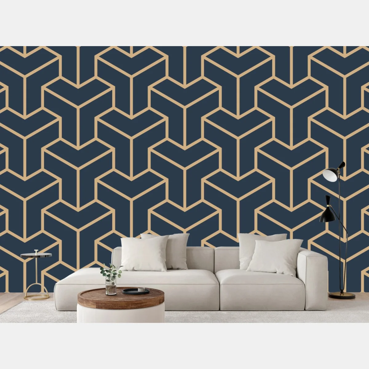 Wall mural Navy geometric cube pattern