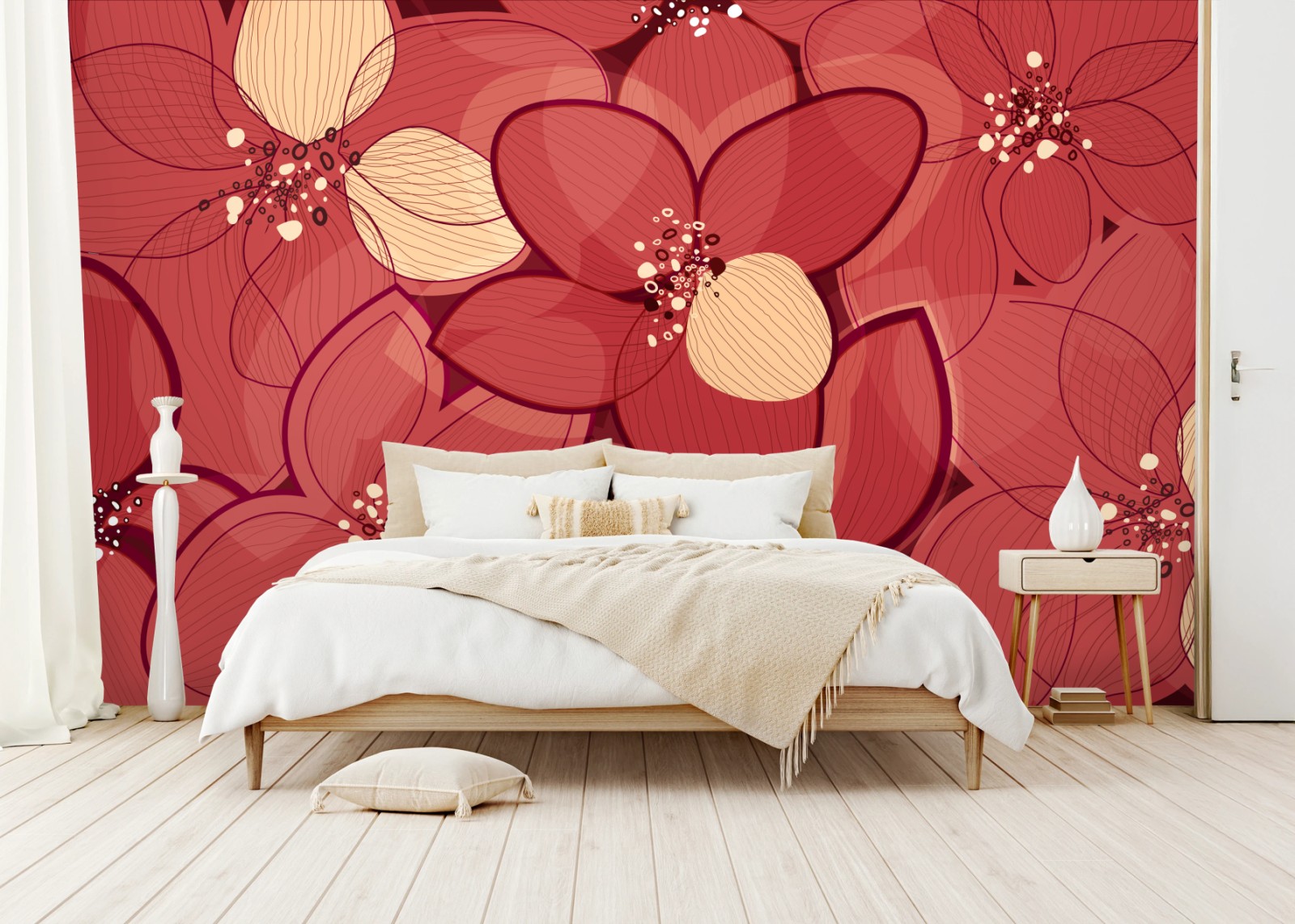 Wall mural Red floral pattern with beige centers