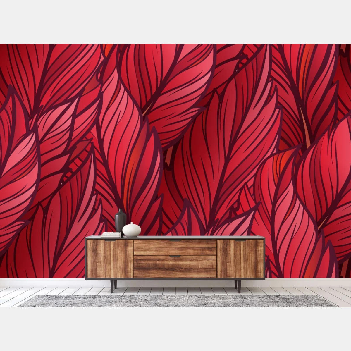 - botanical, seamless pattern, interior decor, leaf pattern, warm tones, vector style, decorative art, red leaves, organic texture, abstract foliage