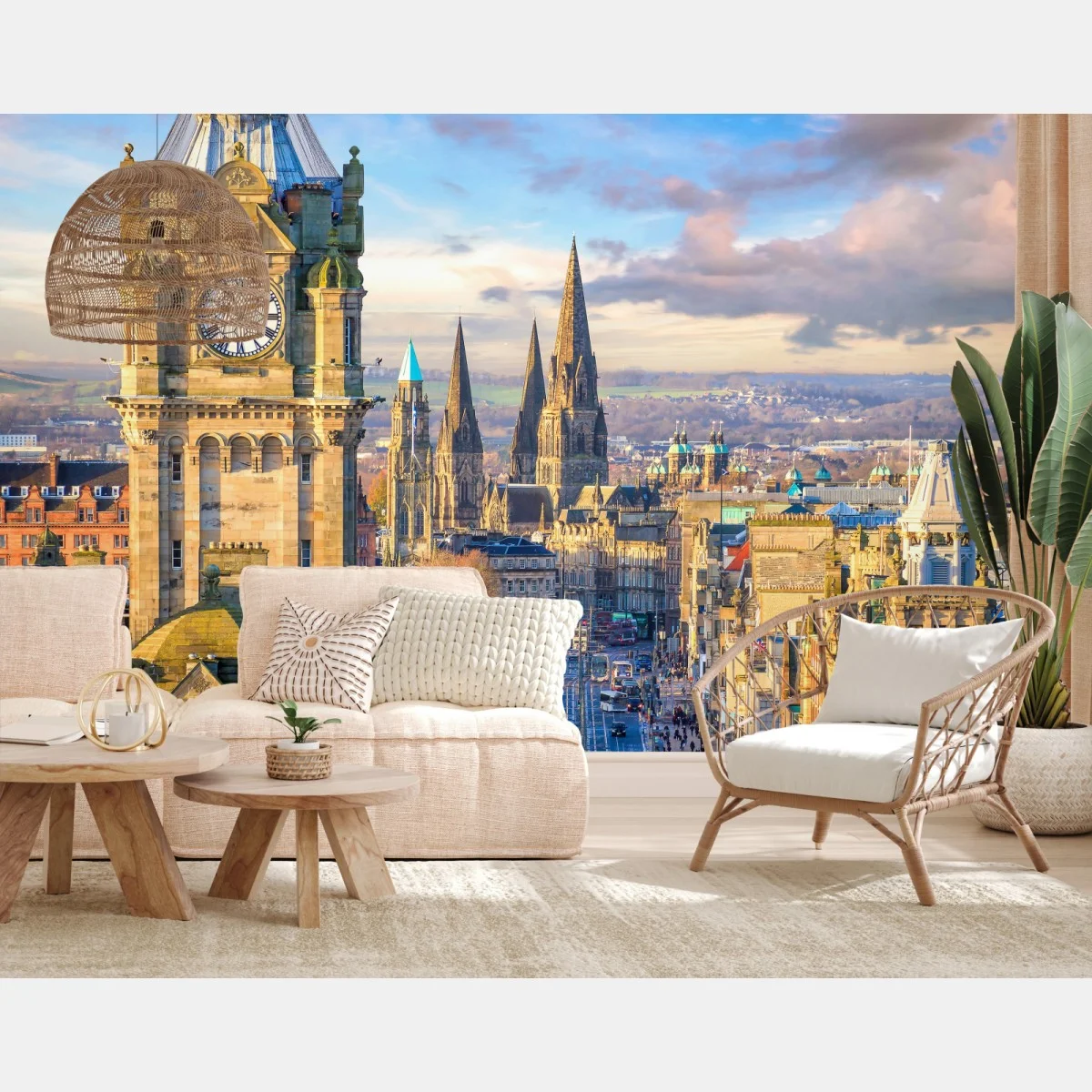 - skyline, cityscape, architecture, travel, castle, historic, old town, clock tower, edinburgh, scotland