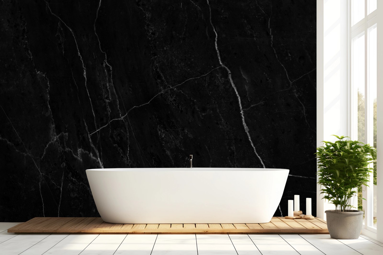 Elegant black marble texture with striking white veins that adds a luxurious, modern touch to interiors.MoreLess