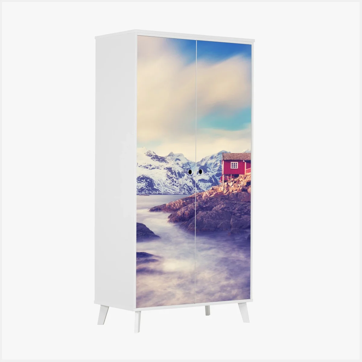 Wardrobe sticker Coastal mountain retreat with red cabins
