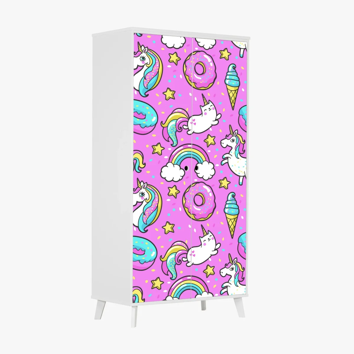 Wardrobe sticker Pastel unicorns and sweets pattern