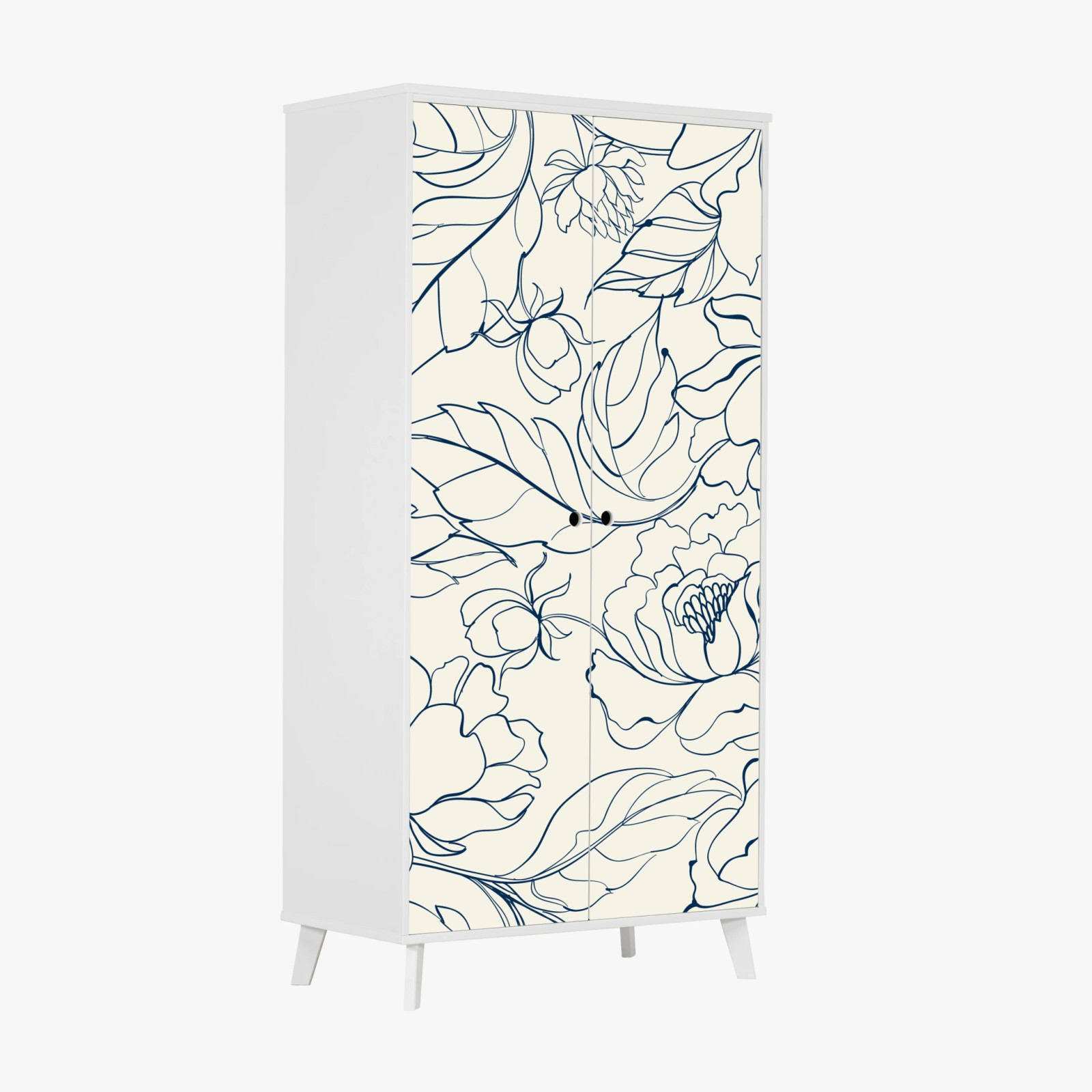 Wardrobe sticker Hand-drawn navy floral pattern on cream