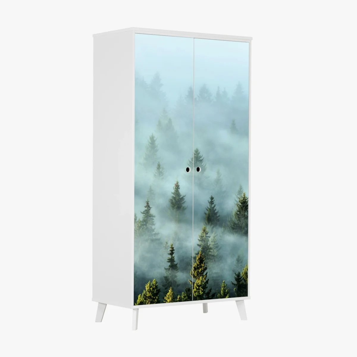 Wardrobe sticker Misty fir forest in morning fog