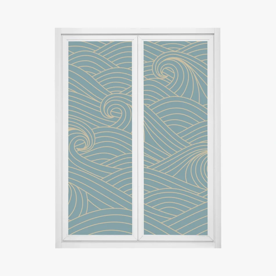 - ocean, abstract, gold, decorative, waves, ornamental, teal, seigaiha, geometric pattern, wave pattern