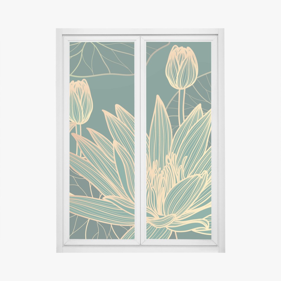 Window decal Gold lotus floral illustration on emerald background